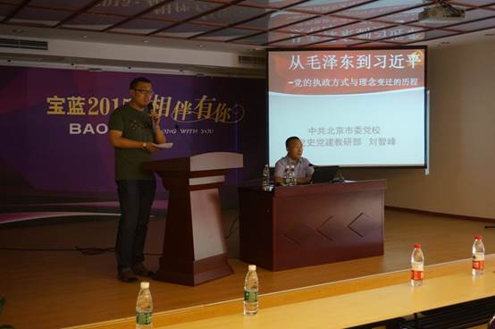 2015年6月23日下午,第五研究室党支部召开全体党员大会,邀请北京市委党校、党史党建教研部副主任刘智峰老师做“从毛泽东到习近平——中国共产党执政方式和执政理念的变迁”主题讲座。