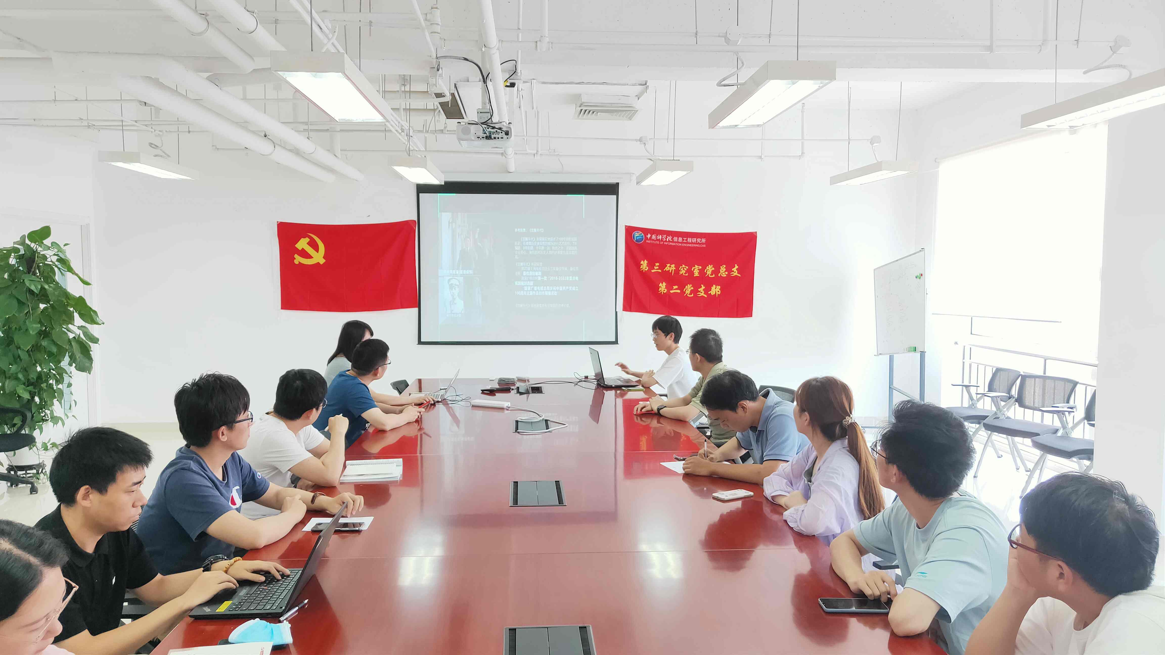 为了引导和吸引更多优秀青年向党组织靠拢,第三研究室党总支第二党支部于2021年7月23日召开了入党动员会。此次会议面向第三研究室大数据分析研究组中尚未提交入党申请书的职工和学生,采用线上线下相结合的方式开展,吸引了包括课题组长、核心骨干在内的18位同志参会。会议由支部书记岳银亮主持。