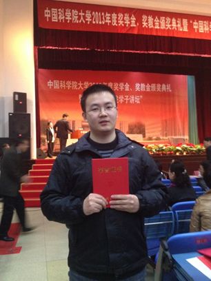 2013年11月19日,中国科学院大学2013年度奖学金颁奖典礼暨“中国科学院学子讲坛”在国科大玉泉路校区礼堂举行,中国科学院院长兼国科大校长白春礼为获奖学生颁奖,我所刘美成荣获中国科学院院长优秀奖,郭腾荣获朱李月华优秀博士生奖。
