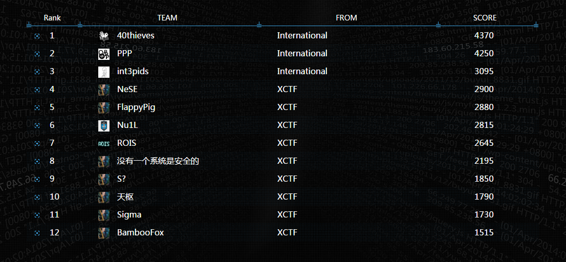 北京时间6月6日上午八点,历时48小时的ALICTF 2016暨XCTF杭州站国际赛落下帷幕,以信工所六室学生为主力的NeSE战队披荆斩棘,夺得XCTF联赛国内参赛队伍第一名,收获一张直通今年七月北京XCTF联赛总决赛入场券。