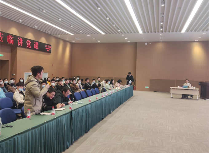 随后,薛教授结合工作经历,分享了自身从事党史研究、宣传教育及互联网工作的体会。他简要介绍了“四史”的主要内容以及中共中央三个历史决议,详细阐述了发表“四史”以及重要人物信息的主要依据和基本原则,强调了互联网传播的信息要政治正确、内容准确、科学严谨,达到政治性、思想性、科学性的高度统一。在交流环节,薛教授就与会党员同志提出的如何将党建与科研业务相融合等问题进行了详细解答。