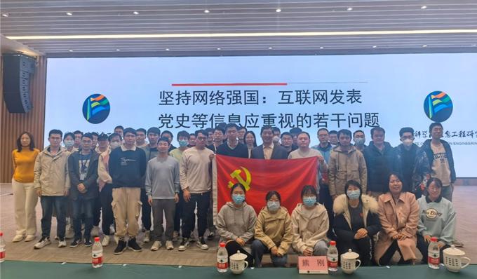 最后,支部书记杨嵘分享了自己的学习感想,他表示,薛教授的党课让我们进一步深入学习了习近平总书记关于网络强国的重要思想以及互联网上发布党史信息的原则和基本要求,在后续的工作中,身为网信领域科研人员,我们要深入贯彻党的二十大精神,为开启全面建设社会主义现代化国家新征程提供可靠的网络安全保障和有力的信息化支撑!