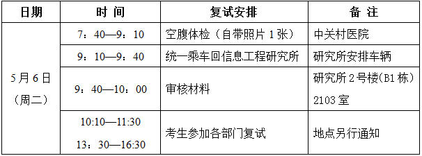 考生如对复试成绩有异议,可在复试结果公布后 3天内向信息工程研究所人事教育处提出书面申诉,经调查属实的,责成复试小组复议。监督电话:010-82546877。