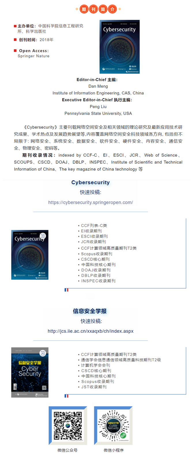 这是继《Cybersecurity》被EI、ESCI、JCR数据库收录后,取得的又一个成绩。