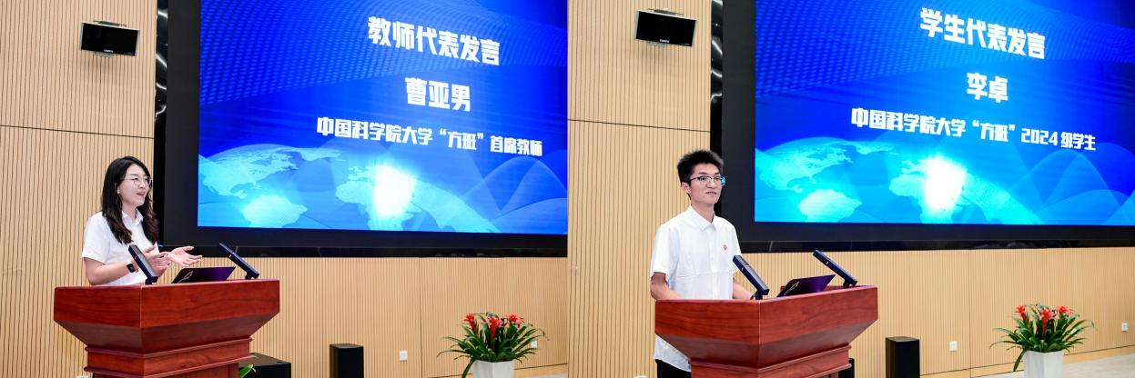 国科大“方班”首席教师曹亚男、2024级学生李卓分别代表22人的教师团队和15名学生感谢方滨兴院士提供的宝贵机会。他们表示,一定利用好这次难得的机会,用心参与、积极思考,在国科大“方班”这样一个多元开放、互通互鉴、协作共进的前沿创新交流平台努力成长、提升自我。