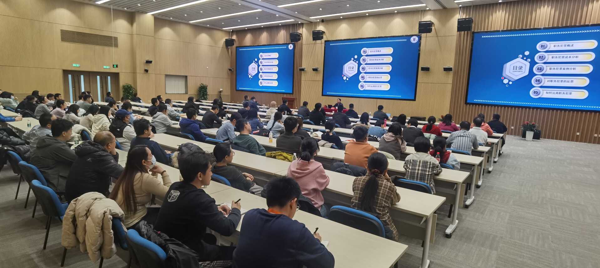 为持续推进党纪学习教育常态化长效化,筑牢拒腐防变根基,2月18日,机关一支部牵头,与树村党支部、六部党支部共同开展反腐倡廉专题党课。党课邀请原国家某机关二级警务专员、二级警监、警示教育中心主任、重要罪犯监区监区长李晓南以《警钟长鸣——珍惜幸福生活,远离职务犯罪》为题,为党员和群众们开展了一场生动的警示教育。研究所党委书记操云甫、纪委书记吕连清及近百名党员、群众现场聆听党课。党课由机关一支部书记高继承主持。