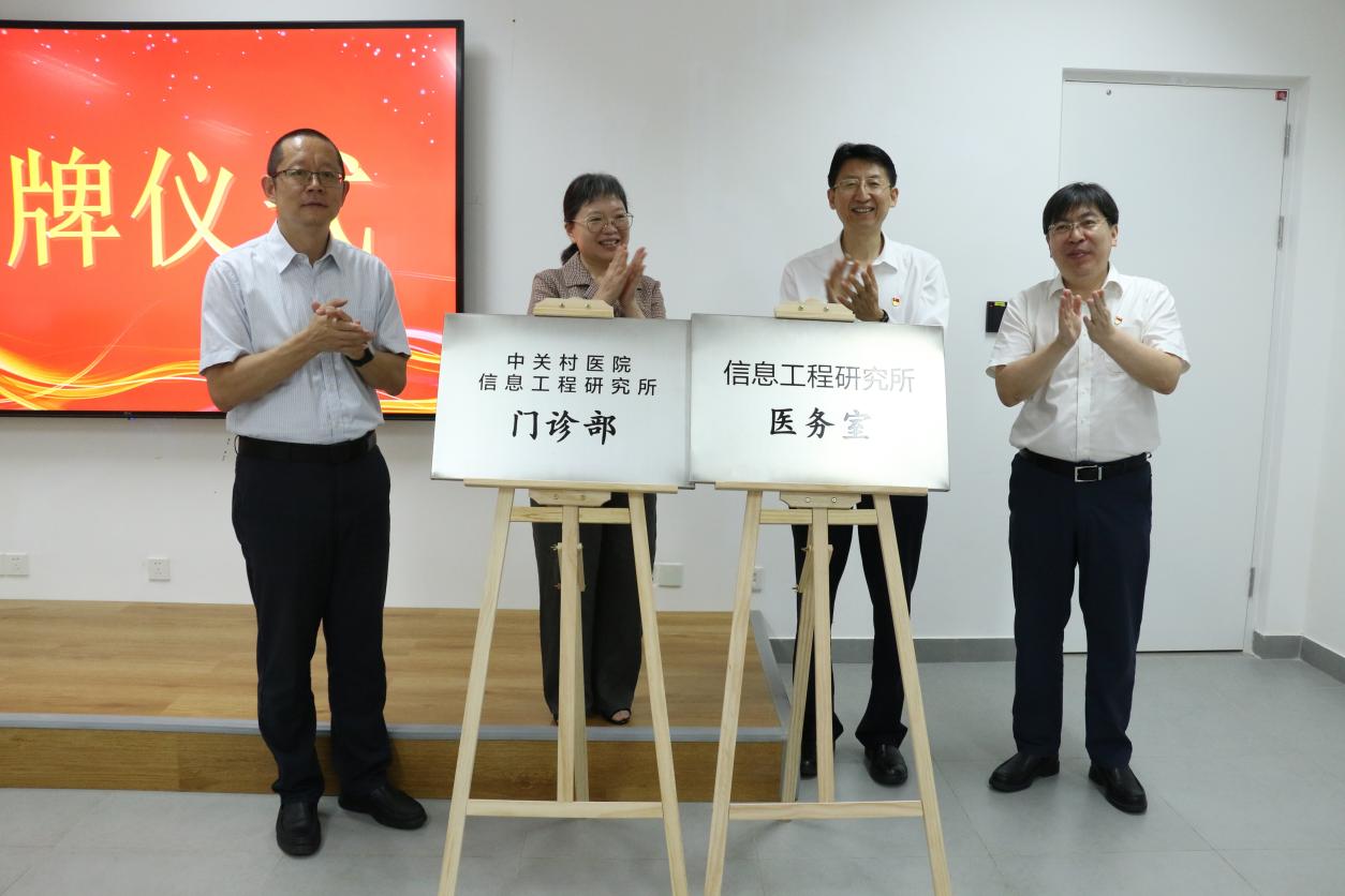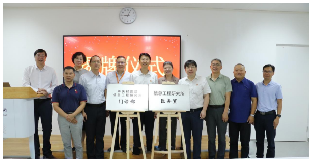 揭牌仪式上,各方领导共同为信息工程研究所医务室、中关村医院信息工程研究所门诊部揭牌。