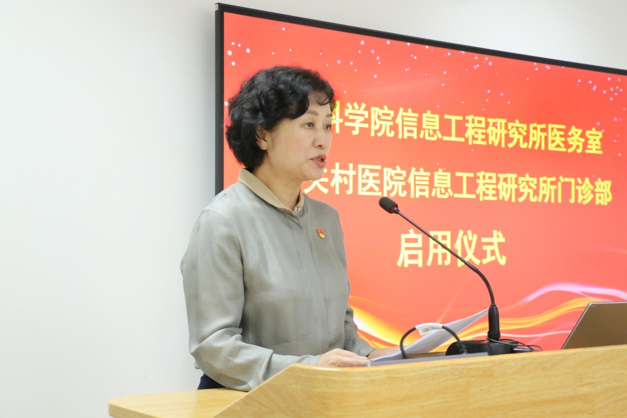 中关村医院党委书记徐春凤在致辞中表示,中关村医院自2014年与中国科学院合作以来,发挥学科优势,持续提供多元医疗服务,此次医务室将送便捷诊疗到信工所科研人员“家门口”,为科创事业护航,是医院与科研院所携手的里程碑。