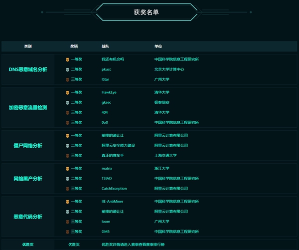 8月15日,中国科学院信息工程研究所(以下简称信工所)第六研究室威胁情报与威胁发现团队组织的三支参赛队伍在DataCon 2020大数据安全分析比赛中斩获DNS恶意域名分析、恶意代码分析两个方向的冠军,以及网络黑产分析方向的亚军,综合成绩在全部参赛团队中居于首位。