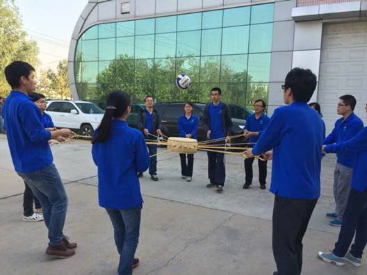 17日的所外拓展在昌平拓展基地进行。新员工参加了“团队破冰”、“动感颠球”等拓展项目。