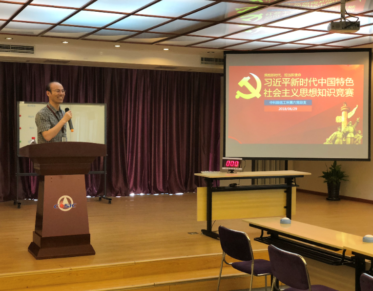 为迎接党的97岁生日,进一步深入学习宣传贯彻党的十九大精神,进一步深入学习《中国共产党章程》,营造自觉学习、遵规守纪的良好氛围,信工所六室党总支于2018年6月29日开展了“拥抱新时代、担当新使命”——学习贯彻习近平新时代中国特色社会主义思想知识竞赛。