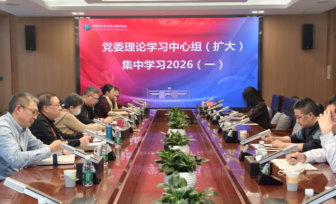 2月4日下午,中国科学院信息工程研究所召开党委理论学习中心组(扩大)学习会,深入学习领会党的二十届四中全会精神和院党组冬季扩大会议精神、院2026年度工作会议精神。研究所党委委员、纪委委员、技术副总师、科技部门及职能部门中层领导干部、党总支及直属支部书记等40余人参加会议。党委书记操云甫主持会议。